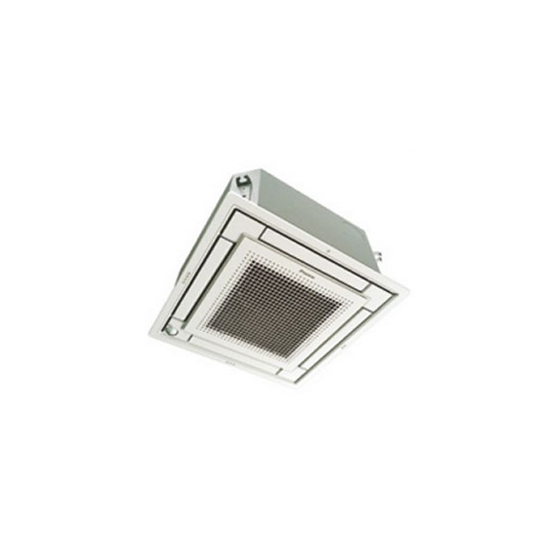 Aire Acondicionado Daikin FQS25C Cassette, Con una potencia en frío 2.150 Frigorias y en calor de 3.870 Kilocalorias. Sky Air Inverter. Conjunto Unidad a nivel de techo + Unidad exterior.