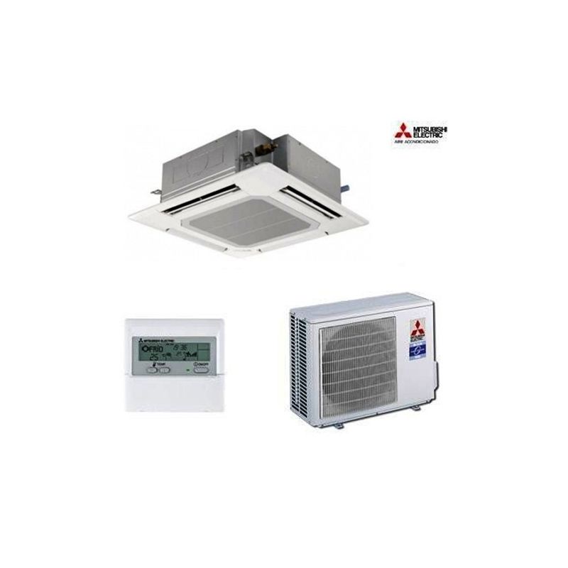 Aire Acondicionado Split 1X1 Cassette Mitsubishi SPLZ-100VBA(H) High COP Con una potencia en Frio: 8.084 Frigorias y en Calor: 9.632 Kilocalorias Gama Mr.SLIM Standard Inverter Bomba de Calor. Compuesto de Unidad Interior PLA-RP100BA(H) + Unidad exterior PUHZ-P100VHA.
