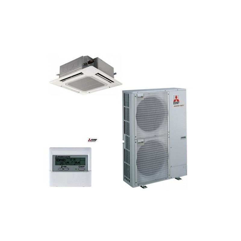 Aire Acondicionado Cassette Mitsubishi SPLZ-125VBA. Potencia en Frio: 10.578 Frigorias y en Calor: 12.040 Kilocalorias. Sistema Standard Inverter con bomba de calor Gama Mr.SLIM. Conjunto Unidad interior PLA-RP125BA + Unidad exterior PUHZ-P125VA.