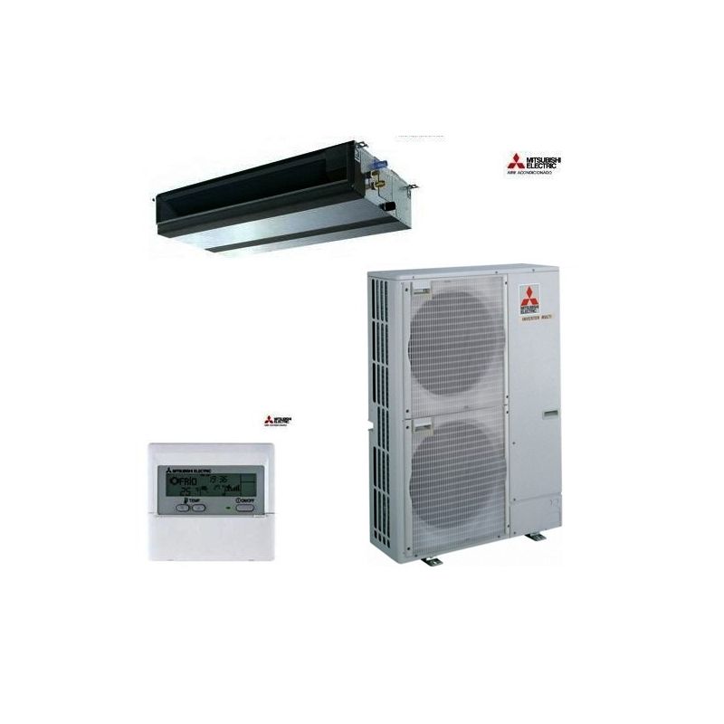 Aire Acondicionado Conductos Mitsubishi SPEZS-125VJA. Potencia en Frio: 10.578 Frigorias - Potencia en Calor: 12.040 Kilocalorias. Sistema Inverter con bomba de calor, Gama Mr.SLIM. Conjunto Unidad interior + Unidad exterior.