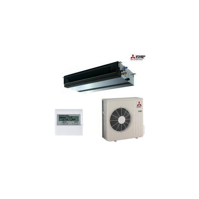 Aire Acondicionado Conductos Mitsubishi SPEZS-71VJA. Potencia en Frio: 6.106 Frigorias - Potencia en Calor: 6.880 Kilocalorias. Sistema Inverter con bomba de calor, Gama Mr.SLIM. Conjunto Unidad interior + Unidad exterior.