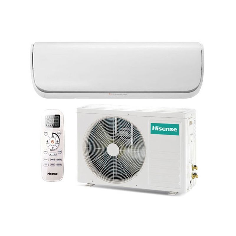 Aire Acondicionado Split 1x1 pared Hisense AST-12UW4RXXQA. Potencia en Frio: 3.010 Frigorias - Potencia en Calor: 3.440 Kilocalorias. Sistema Inverter con bomba de calor, compacto y de bajo nivel sonoro. Conjunto Unidad interior + Unidad exterior.