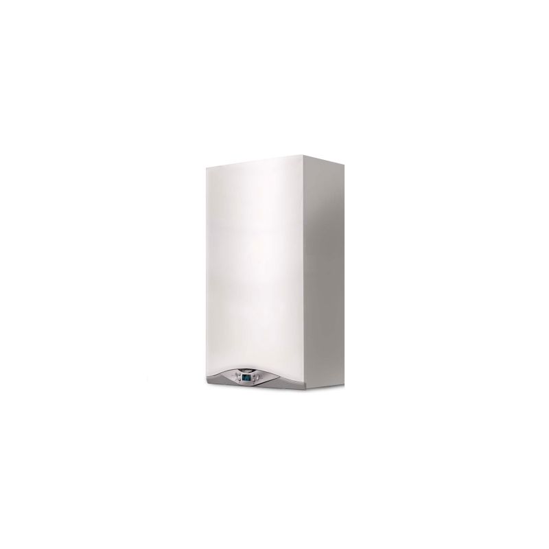 Caldera de condensación, Ariston Cares Premium 24 FF. Potencia de 24 kW en calefacción y en ACS, mixta instantánea, se caracteriza por su diseño atractivo y por sus reducidas dimensiones. Disponible en Gas Natural.