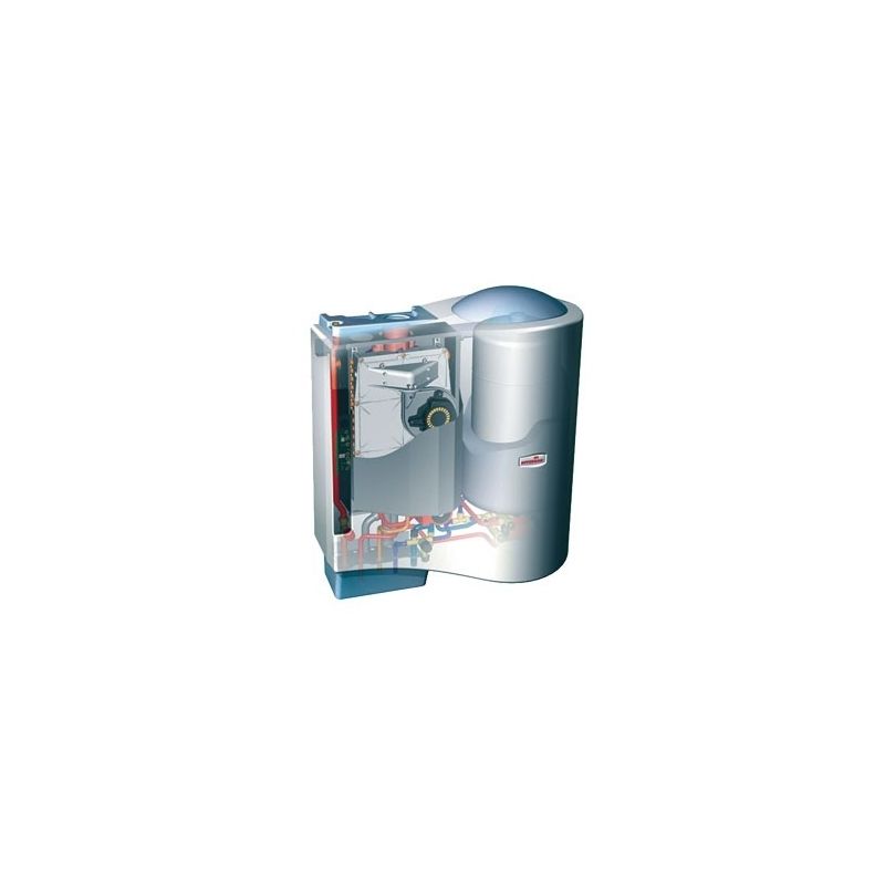 Caldera Intergas Prestige con una potencia de 26,8 kw en Calefacción y 31,5 kW en Agua Caliente Sanitaria con un acumulador integrado de 40 litros. Caldera de condensación mural. Para Gas natural y butano.