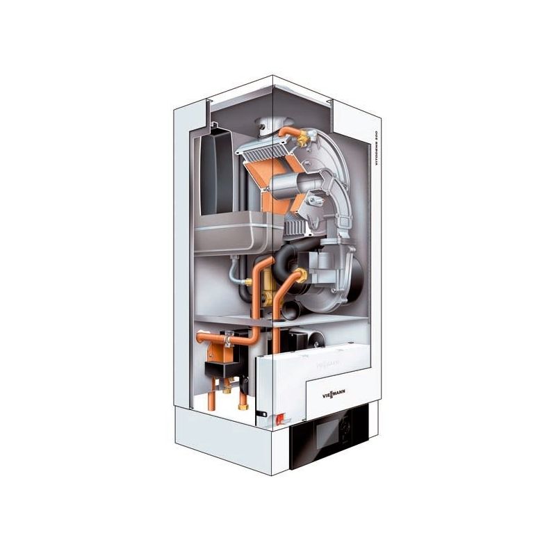 Caldera de condensación Viessmann Vitodens 200-W WB2C 26 kW con una potencia de 26 kw en Calefacción y 29,3 kW en Agua Caliente Sanitaria. Caldera mural mixta instantánea con funcionamiento estanco. Para Gas natural y butano.