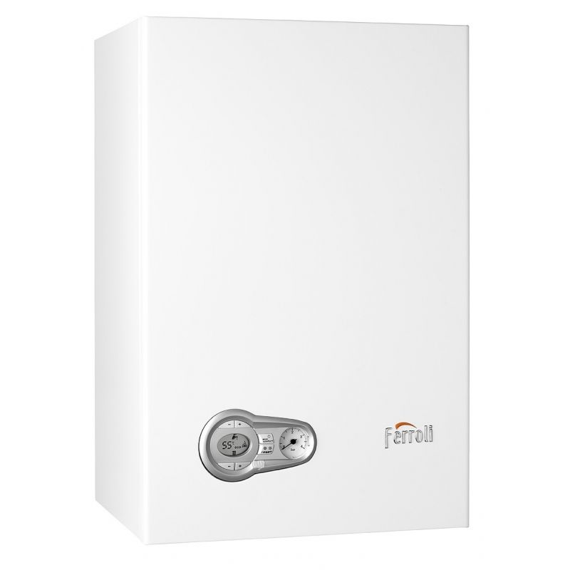 Caldera Ferroli BlueHelix Tech 25 de Condensación. Caldera Mural Mixta Instantánea con Microacumulación para Calefacción y Agua Caliente Sanitaria con una Potencia de 25 kw. Intercambiador de placas y bomba de calefacción modulante.