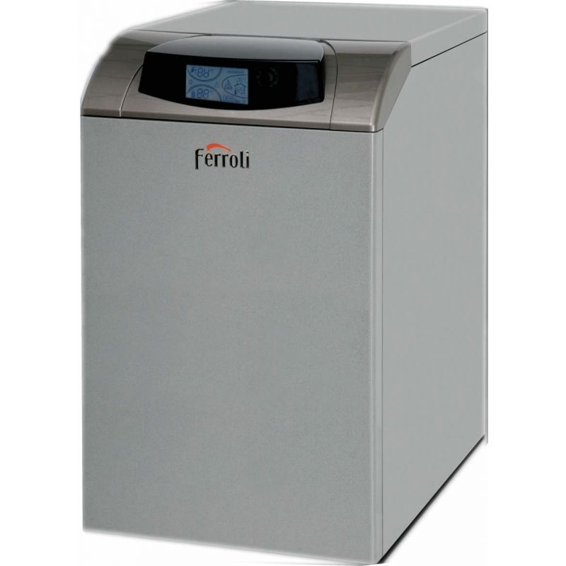 Caldera de Gasoil, Ferroli Atlas D 37 SI UNIT. Con una potencia de 37.0kW, mixta para calefacción y Agua Caliente Sanitaria instantánea. Grupo Térmico Digital de Condensación. Caldera de pie doméstica de hierro fundido.