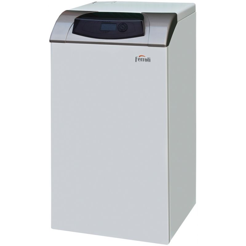 Caldera de Gasoil, Ferroli SILENT 25 SI UNIT. Con una potencia de 25 kW, Grupo térmico analógico con display digital de chapa de acero para calefacción y ACS instantánea. Caldera de pie doméstica.