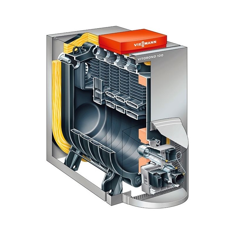 Caldera de Gasoil Viessmann Vitorond 100 VR2B 37-45 kW Con una potencia de 37-45 kW en solo calefacción de baja temperatura de funcionamiento estanco. Caldera de pie doméstica de fundición.