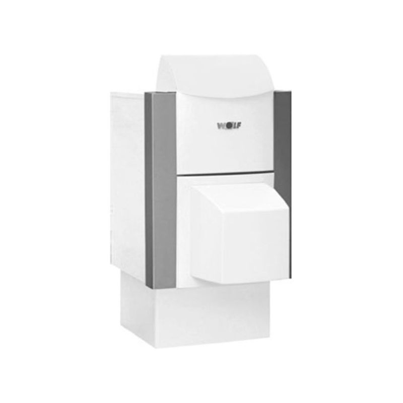 Caldera de Gasoil Wolf CHK 60 Con una potencia de 60 kW en solo calefacción de baja temperatura. Posibilidad de combinar con interacumulador horizontal CB/CE. Caldera de pie doméstica en hierro fundido.