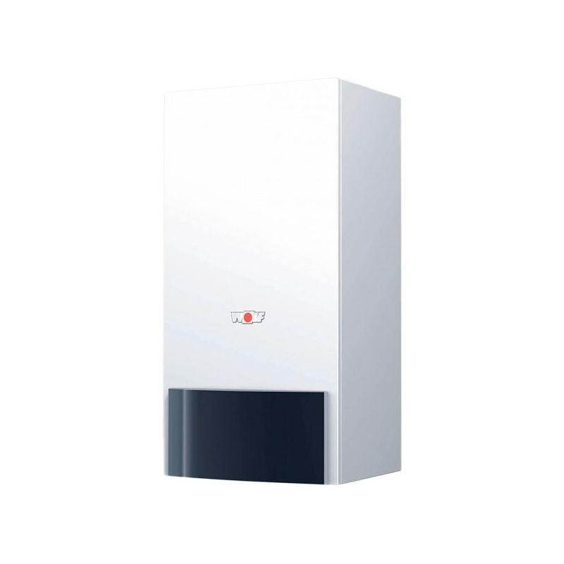 Caldera de bajo NOx Wolf CGG 1K 28 Con una potencia de 28 kW en calefacción y de baja y alta temperatura con producción instantánea de Agua Caliente Sanitaria. Disponible en Gas Natural y propano.