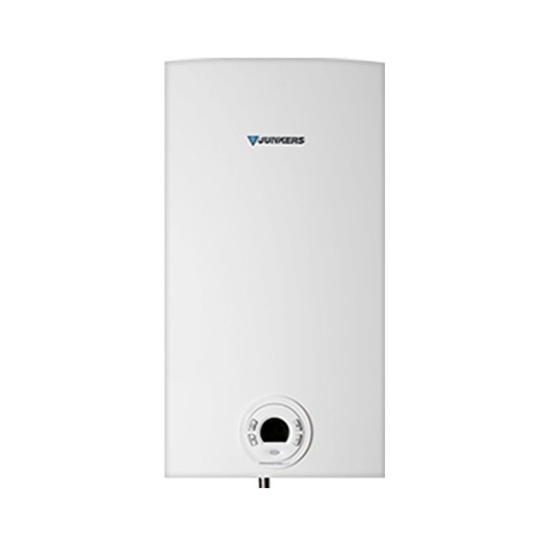 Calentador encendido por batería, Junkers Hydro Battery Plus WTD 11 KB. Potencia de 19.2 kW en Agua Caliente Sanitaria, instantáneo y de tiro natural termostático. Caudal: 11 litros. Display LCD con indicación de temperatura y reloj Disponible en Gas natural y butano.