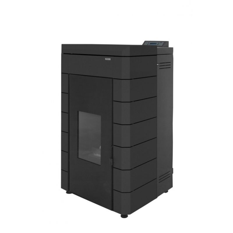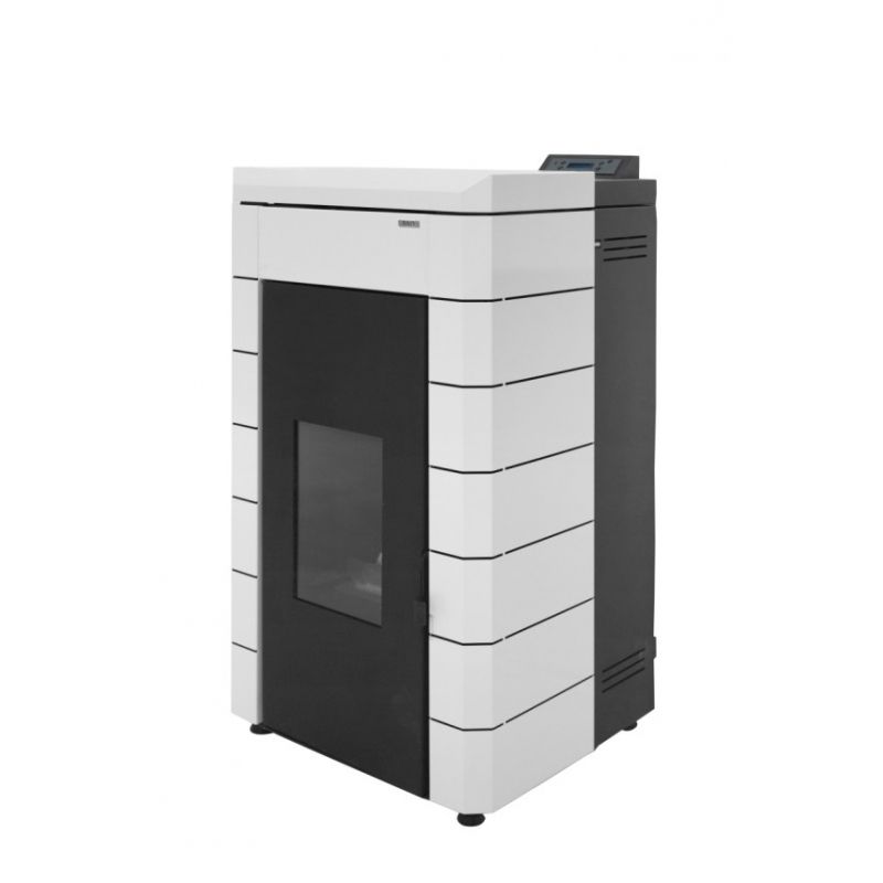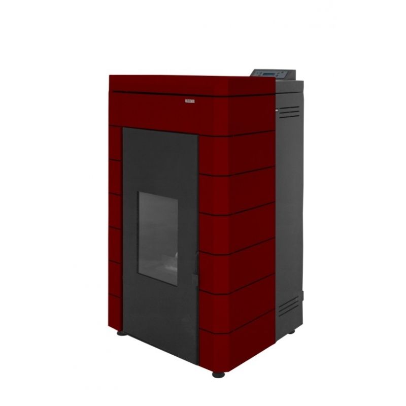 Estufa de Pellets Baxiroca Alae Agua. Potencia de 23 kW 19.780 kilocalorias, (sin envolvente). Disponible en 3 colores de envolvente, blanco, negro y burdeos. El precio del envolvente es a parte. Estufa de pie doméstica de chapa de acero.