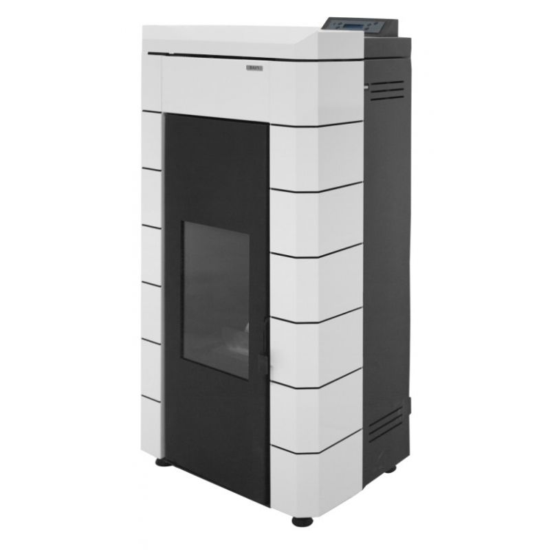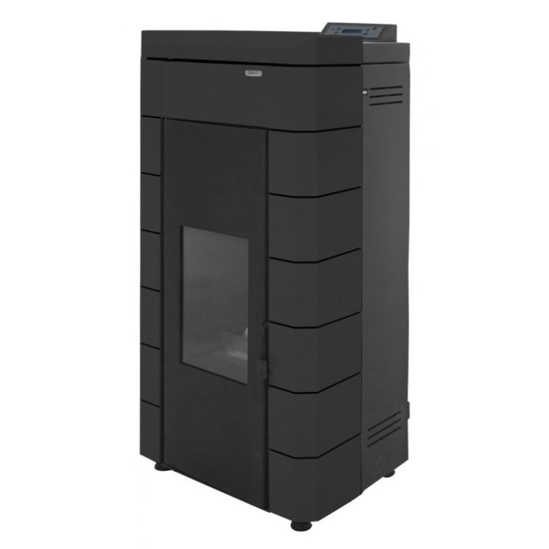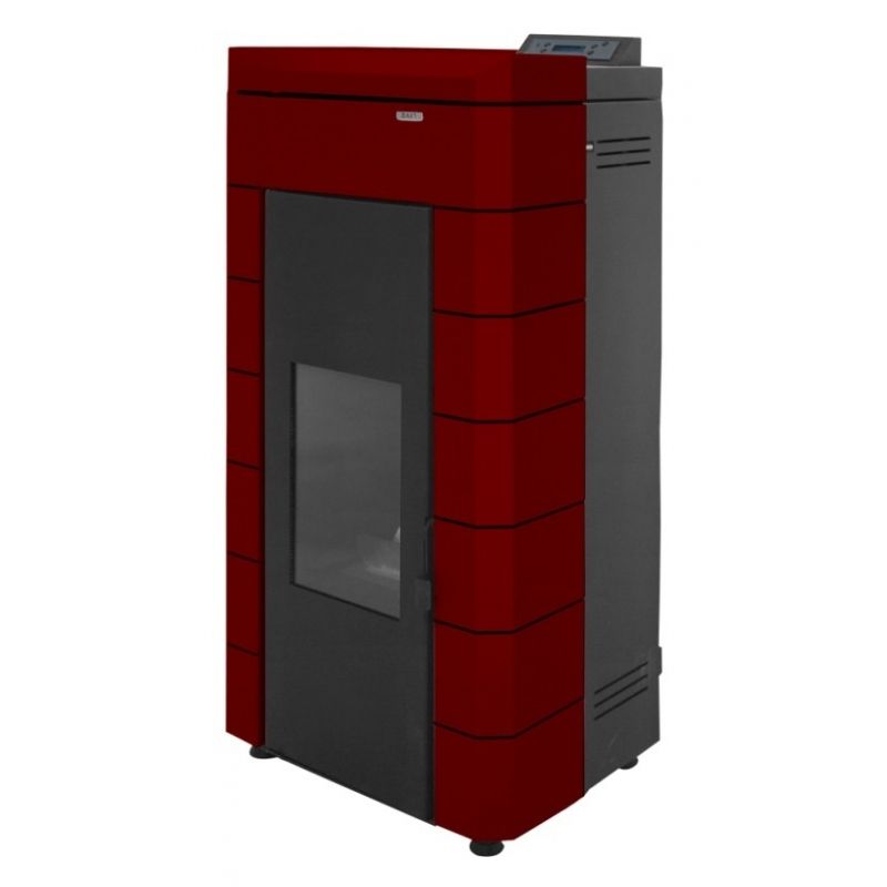 Estufa de Pellets Baxiroca Elba Aire 7.5. Potencia de 7.5 kW 6.450 kilocalorias, (sin envolvente). Disponible en 3 colores de envolvente, blanco, negro y burdeos. El precio del envolvente es a parte. Estufa de pie doméstica de chapa de acero.