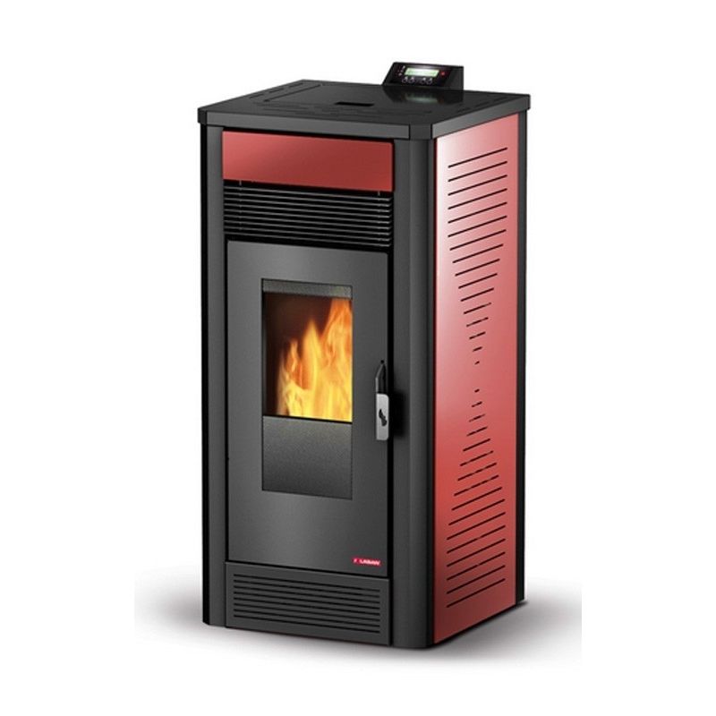 Estufa de Pellets ATILAN PLUS. Con una potencia de 12 kW 22.320 kilocalorias, de salida de aire directo, son recomendables para viviendas de estancias diáfanas. Estufa de pie doméstica en chapa de acero.