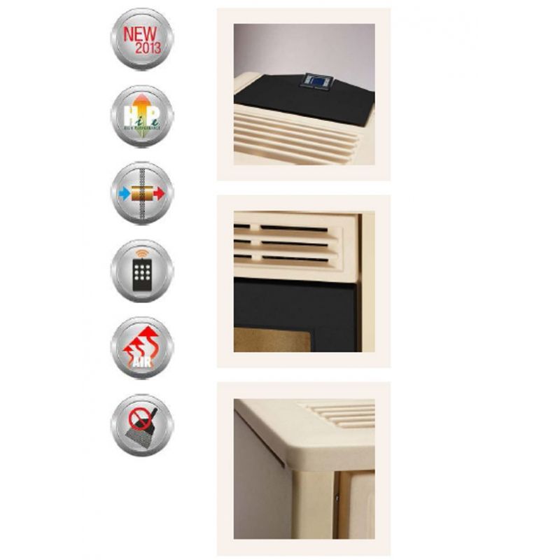 El diseño de esta estufa es de una elegante estética, con ello se podrá decorar cualquier tipo de ambiente dando un estilo moderno a su estancia, el combustible para su funcionamiento es exclusivamente de Pellets, dando un calor sano y seguro en el ambiente.