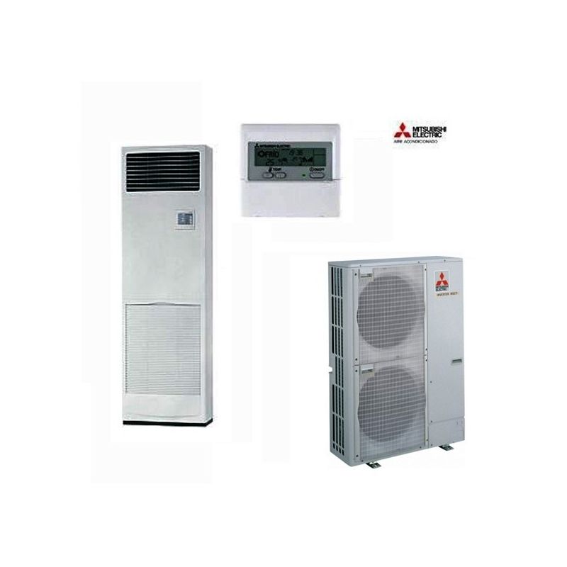 Aire Acondicionado Split de Columna 1x1 Mitsubishi PSZ-125VGA. Con una potencia en Frio: 10.664 Frigorias y en Calor: 12.040 Kilocalorias Power Inverter con Bomba de Calor Gama Mr.SLIM compuesto de Unidad interior PSA-RP125GA + Unidad exterior PUHZ-RP125VKA.
